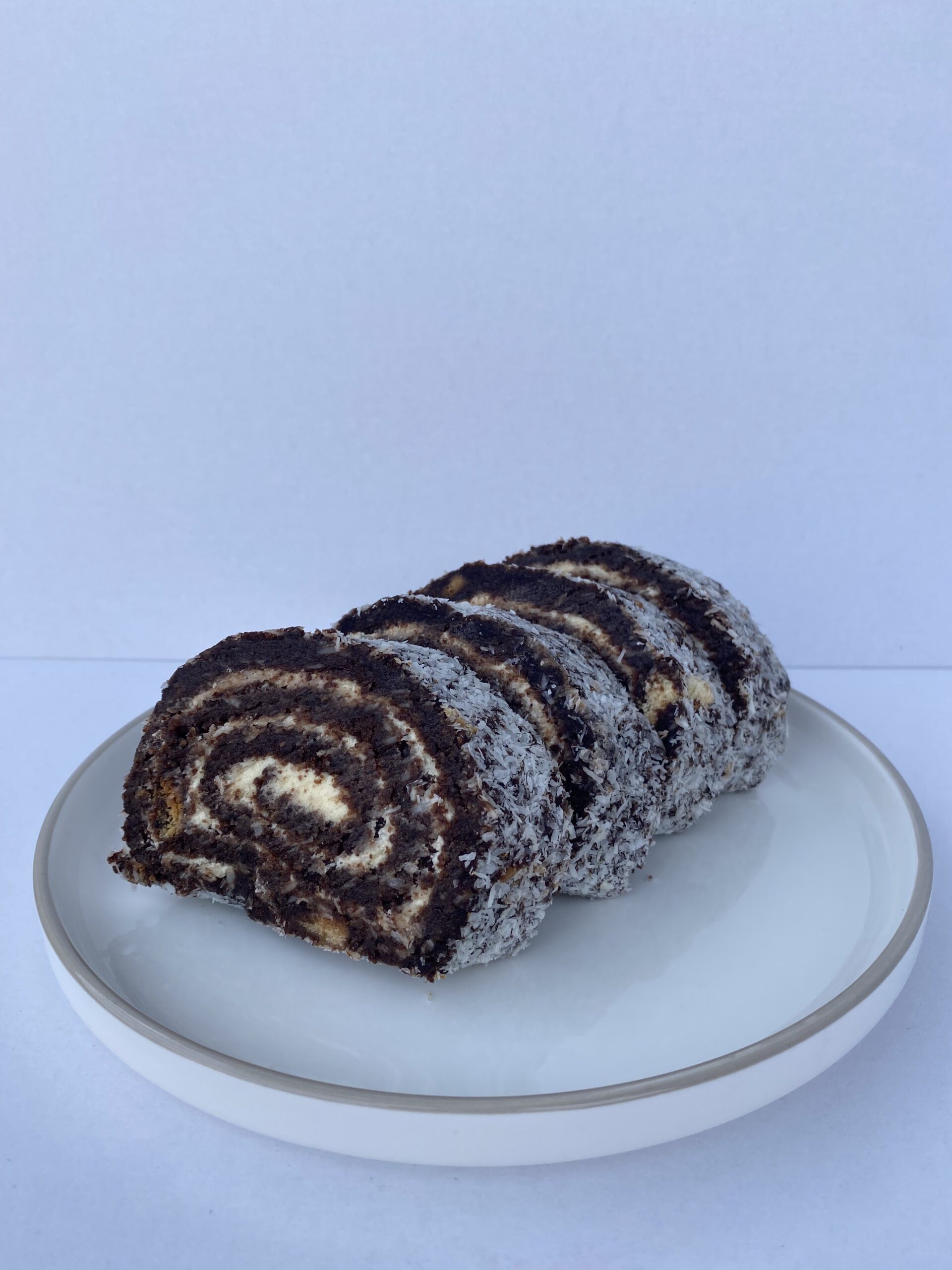 Egzotikus kókuszos töltelékkel készült piskótatekercs, mely könnyű állagával és intenzív ízével hódít